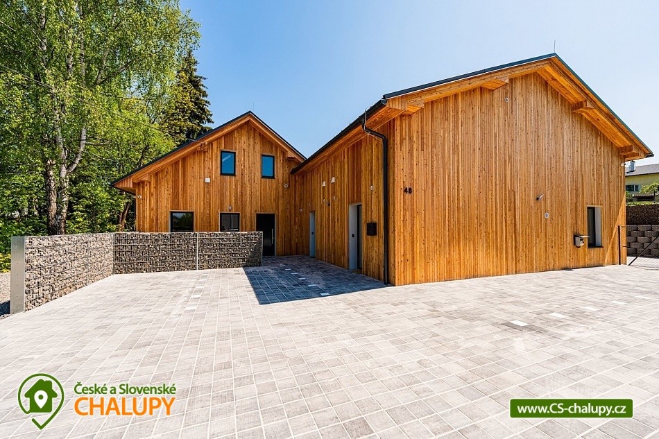 Apartmány Králíky – luxusní chalupa Králický Sněžník – Dolní Morava. Nabízíme moderní rodinné ubytování v chalupě se 3-mi apartmány (každý AP pro až 8 osob) nacházející se v podhůří Králického Sněžníku a v blízkosti vyhledávaného horského lyžařského střediska Dolní Morava. Jedná se o 3 samostatné a plně vybavené apartmány s vlastními vchody a předzahrádkami, které si můžete pronajmout samostatně, popř. celou chalupu jako celek. Každý apartmán má vlastní parkovací stání. Kromě toho máme také společnou kolárnu s lyžárnou. Apartmány je možné rezervovat samostatně v kapacitě 4 dospělí a 4 děti, případně kombinovat více apartmánů. Celková kapacita všech tří apartmánů je 24 lůžek (12x dospělí a 12 dětí). Každý apartmán má dvě samostatné ložnice vybaveny vždy po manželské posteli a přistýlkách (4x dospělí a 4x děti). V každém apartmánu je k dispozici minimálně jedna koupelna a dvě WC. Koupelny jsou vybaveny walk – in sprchovým koutem, samozřejmostí je fén. Objekt je vytápěný moderním podlahovým systémem na elektřinu. Vybavení apartmánů tvoří: kuchyňská linka s vestavnými spotřebiči (chladnička s mrazákem, velká myčka nádobí, elektrická trouba, indukční varná deska, mikrovlnka, digestoř), dalšími spotřebiče (kávovar, rychlovarná konvice, toustovač, multifunkční mixér). Veškerým vnitřním vybavením: nádobí, hrnce, příbory, pánvičky, dětské nádobí atd. K dispozici je WiFi pokrytí v celém apartmánu, smart TV s online vysíláním TV. Technická místnost je vybavena pračkou a sušičkou. Město Králíky je plně sociálně vybavené s centrem v podobě krásného náměstí v jehož okolí najdete pekárny, kavárny, restaurace a mnoho obchodů. Apartmány mají plně vybavenou kuchyň, kde si můžete připravit jídlo dle vlastních preferencí. Lokalita Kralického Sněžníku je známá velkým množstvím skiareálů v dojezdu kolem 10km. Např. Ski areál Větrný vrch, Dolní Morava, Králičák Kunčice, České Petrovice, Čenkovice, Proskil Branná, Ostružná, Přemyslov, Petříkov, Ramzová a Červenohorské sedlo. Dále upravenými běžeckými trasami a velkým množstvím cyklostezek.