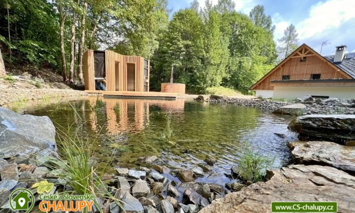 NoNe apartmány obklopené kouzelnou přírodou Jeseníků a umístěné u skal a lesa, se nachází v soukromí a klidném prostředí obce Branná nedaleko obce Lipová – lázně a města Jeseník. Jedná se o ideální místo k rekreaci pro rodiny, skupiny přátel, pro firmy jak na teambuilding, tak školení nebo třeba pro výuku jógy. Těšit se můžete na venkovní wellness se saunou, koupacím sudem a koupacím jezírkem. Oceníte také hernu s ping -pingovým stolem, vinný sklípek a venkovní prostory přizpůsobené pro cvičení či meditaci v prostoru bývalého lomu. NoNe apartmány poskytují ve svém areálu velmi komfortní a stylové ubytování pro 45 osob v 10 samostatně pronajímaných apartmánech a jednom samostatném domečku. Součástí všech apartmánů a domečku je vlastní sociální zařízení a kuchyňský kout. POPIS: Čtyřlůžkový APARTMÁN 1 (1+kk, 27 m2) má k dispozici k dispozici 1x dvoulůžko a 1x patrovou postel. V apartmánu si lze užívat výhled do zahrady ke skále a jezírku. Dvoulůžkový APARTMÁN 2 (1+kk, 19 m2) má k dispozici 1x dvoulůžko. Apartmán poskytuje výhled směrem do lesa. Čtyřlůžkové apartmány – APARTMÁN 3 (1+kk, terasa, 22,5 m2), APARTMÁN 4 (1+kk, terasa, 32 m2) a APARTMÁN 5 (2+kk, terasa, 40 m2) mají k dispozici 1x dvoulůžko a 1x patrovou postel. Šestilůžkový APARTMÁN 6 (1+kk + mezonet, terasa, 47m2) má k dispozici 2x dvoulůžka a 2x jednolůžka. Část spací plochy je umístěná v horní části apartmánu, kde je nutné vylézt po prudších dřevěných schůdcích. Pětilůžkový APARTMÁN 7 (1+kk + mezonet, terasa, 33 m2) má k dispozici 1x dvoulůžko a 3x jednolůžka, část spací plochy je též umístěná v horní části apartmánu. Podkrovní čtyřlůžkové apartmány – APARTMÁN 8 (1+kk, 38 m2) disponuje 1x dvoulůžkem, 2x jednolůžko a rozkládacím gaučem, APARTMÁN 9 (1+kk, terasa, 32 m2) má k dispozici 1x dvoulůžko a 2x jednolůžko. Oba apartmány poskytují krásné výhledy do okolí. Nejmenší dvoulůžkový APARTMÁN 10 (1+0, 13 m2) disponuje 1x dvoulůžkem. Tento malý apartmán může sloužit jako další pokoj pro jeden z větších apartmánů vedle. Součástí apartmánů 1–9 je plně vybavený kuchyňský kout (varná deska, lednička, mikrovlnná trouba, varná konvice a nádobí) a jídelní stůl. Malý apartmán 10 má k dispozici ledničku, mikrovlnnou troubu, varnou konvici a základní vybavení pro přípravu lehkého občerstvení. Sociální zařízení zahrnuje ve všech apartmánech koupelnu se sprchovým koutem a toaletou. Všechny apartmány jsou vybavené kvalitním masivním nábytkem, vlastním TV a k dispozici je WIFI připojení na internet. Vytápění je v apartmánech řešeno horkovodními radiátory. U apartmánů 3 až 7 a 9 lze posedět na venkovní terase s posezením a užívat si výhledy na okolní město s dominantním kostelem, který večer bývá krásně nasvícen. Samostatně stojící DOMEČEK (3+1, 64 m2) se nachází v zadní části areálu. Má kapacitu pro 6 osob, celkem jsou k dispozici 2x dvoulůžka ve dvou dvoulůžkových ložnicích a 2 přistýlky řešené rozkládací pohovkou v obývacím pokoji. Součástí domečku je obývací pokoj s krbovými kamny, sedací soupravou a TV. WIFI připojení je k dispozici. Dále je zde jídelna s plně vybavenou kuchyňkou a jídelním stolem. Součástí domečku je také podkrovní koupelna se sprchovým koutem a WC a jedno samostatné WC v přízemí. Vytápění je řešeno elektrickým podlahovým topením či lze přitopit v krbových kamnech. U domečku lze posedět buď na balkóně nebo na spodní terase a užívat si výhledy do okolní přírody a obce Branná. Pro všechny ubytované je v areálu k dispozici společenská místnost s krbovými kamny, jídelním stolem, sedací soupravou a TV. Děti se mohou těšit na hernu vybavenou spousty hraček. Nechybí ani kolárna, lyžárna, kde je k dispozici pingový stůl. Dospělí mohou využívat také vinný sklípek. Venku lze posedět na terase nebo u ohniště. K dispozici je také gril. Za příplatek lze relaxovat ve venkovní finské sauně pro 5–6 osob z voňavého olšového dřeva, ve které se krásně prohřejete. Odpočívárna u sauny vyhřívaná infrapanelem disponuje vlastním Bluetooth audio systémem a WiFi. U sauny je k dispozici ochlazovací sprcha nebo lze využít jezírko s křišťálovou vodou a přírodní filtrací. Dále lze též za příplatek odpočívat v „Hot tube“ koupací sudu. V areálu jsou též místa určená pro meditaci nebo cvičení. Dále je k dispozici venkovní hřiště. Parkovat lze přímo u objektu.