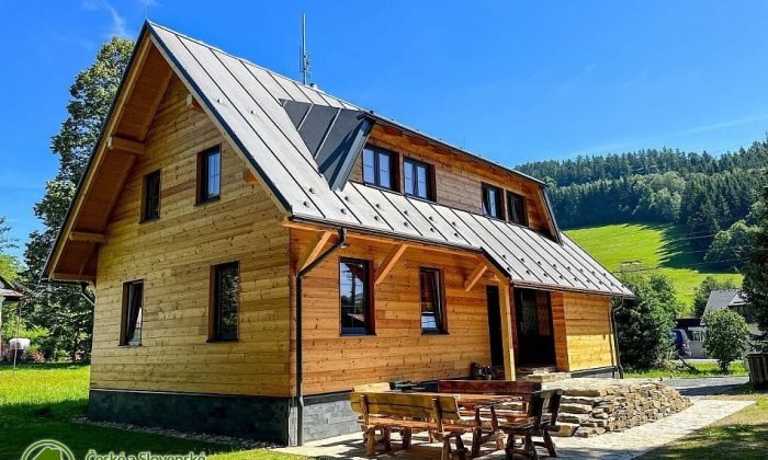 Chalupa Anička se nachází v obci Rejhotice v CHKO Jeseníky. V chalupě se pohodlně ubytuje až 10 osob ve 3 ložnicích. Stylová chalupa nabízí příjemné ubytování. K dispozici je venkovní ohniště a posezení, nechybí ani prolézačky pro Vaše děti. POPIS chalupy: V přízemí je plně vybavená kuchyň, prostorná obytná část, lyžárna, koupelna se sprchovým koutem a toaleta. V poschodí je druhá koupelna se sprchovým koutem, toaleta a 3 vkusně zařízené pokoje (manželskou postelí a jednolůžkem disponují dva pokoje, třetí pokoj je vybaven palandou a dvěma jednolůžky). V chalupě je plně vybavená kuchyň vč. lednice s výrobníkem ledu, myčka nádobí, mikrovlnná trouba a rychlovarná konvice. Srdcem chalupy je sporák na dřevo, kde lze pohodlně vařit – mimo to je kuchyň vybavena i elektrickým sporákem. Pračka je také samozřejmostí, stejně jako vysokorychlostní WiFi připojení. Na přání můžeme připravit dětskou postýlku. V obývací části je velká chytrá televize s připojením k internetu, kam si můžete připojit třeba váš disk a sledovat své oblíbené pořady nebo brouzdat po youtube. Svojí chytrou TV disponují také všechny tři ložnice. V lyžárně se nachází sušák na lyžáky, boty a rukavice atd.. Sociální zařízení: 2 koupelny, každá se sprchovým koutem, v jedné koupelně je jednoduché umyvadlo, horní koupelna se dvěma umyvadly, spodní koupelna disponuje také pisoárem pro chlapskou potřebu. 2 oddělené toalety s umyvadlem. Vytápění: V přízemí a sociálních zařízeních v patře je podlahové vytápění. V kuchyni/obývací části se nachází sporák na dřevo s troubou sloužící k vytápění i podkrovní části pomocí rozvodu vzduchu a na kterém je možné i vařit. U chalupy je pohodlné parkování pro 3 – 4 automobily. Venku najdete ohniště s grilem a posezením přímo u chalupy. Prolézačky pro děti se skluzavkou pro zaměstnání vašich ratolestí. Kola nebo kočárky si můžete bezpečně uskladnit v zahradním domku. V nejbližším okolí je spoustu příležitostí ke sportovním a zábavním aktivitám jak v letním tak zimním období: SKIAREÁL KOUTY (1,8 km od chalupy) nabízí hned čtyři sjezdovky a disponuje nejmodernější 6ti sedačkovou lanovkou. V letním období funguje v areálu bike park, balance park, můžete si zahrát discgolf nebo vyjet lanovkou nahoru a absolvovat 17 km dlouhý sjezd na koloběžce. Možná je i exkurze v největší přečerpávací vodní elektrárně v ČR. Je zde též naučná stezka nebo rozhledna a celoročně fungující bowling. SKIAREÁL KAREŠ (500m od chalupy) poskytuje návštěvníkům veškeré zázemí s možností výborného občerstvení, ubytování a dalších služeb. Areál je svou charakteristikou vhodný především pro rodiny s dětmi, nebo pro začínající lyžaře a snowboardisty. V letní sezóně je Areál Kareš ideálním místem pro aktivně strávený volný čas. Pro milovníky adrenalinových zážitků jsou zde horské minikáry, bikepark a bungee trampolíny. Když tyto atrakce doplníte aktivitami na slackline, sportovním a Woody Doo hřišti, máte jistě o zábavu postaráno. Areál Kareš disponuje přístupovou plošinou pro handicapované. Provozuje také travní lyžování, horské koloběžky, outdoor aktivity a další. SKIAREÁL ČERVENOHORSKÉ SEDLO (11 km od chalupy) je jedním z nejznámějších středisek sjezdového lyžování na severní Moravě. Je známou křižovatkou zimních, ale i letních turistických cest. Nadmořská výška Červenohorského sedla je 1013m. Těšíme se na Vás u nás.