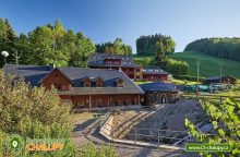 Chalupa Baba Jaga – Prkenný Důl – Žacléř – ubytování Krkonoše. Nabízíme ubytování pro až 22 osob v 6 ložnicích, které se nachází přímo v lyžařském areálu Žacléř – Prkenný Důl ve východních Krkonoších. Chalupa je postavena ze dřeva a kamene v typickém horském stylu. Krásná společenská místnost je jako stvořená k příjemným večerům. Chalupu pronajímáme v zimní a letní sezóně jako celek, v mimosezóně možno po jednotlivých pokojích. V chalupě jsou k dispozici 4 pokoje po 4 osobách a 2 pokoje po 3 osobách. Pokoje mají vlastní sociální zařízení, spaní je ve vyvýšeném prostoru nad jednotlivými pokoji. Každý pokoj má mimo pevná lůžka ještě rozkládací dvoulůžko ve spodní části. K dispozici je televize ve velké společenské místnosti, Wi-Fi, zastřešená terasa s grilem a udírnou, lyžárna s vysoušeči lyžáků a vybavená kuchyně: profi plynový sporák s elektrickou troubou, vařič dvou plotýnka, lednice, myčka, mrazák, rychlovarná konvice, kontaktní gril a mikrovlnná trouba. Vytápění zajišťuje tepelné čerpadlo. Parkování je možné přímo u objektu zdarma. Místo je ideálním východiskem k výletům do krásné přírody. Lyžařské areály jsou v Prkenném Dole, lyžařský areál Mladé Buky, Skiresort Janské Lázně – Pec p. Sněžkou, Lyžařský areál Malá Úpa. V blízkosti je Sněžka, Adršpašsko – Teplické skalní město, Černá Hora, Rýchory a Rýchorský prales, zámky Kuks, Nové Město n. Metují, v Polsku Ksiaž. Pevnost Stachelberg. Aquaparky v Karpaczi a Jelení Goře, v Karpaczi westernové městečko, park miniatur v Kowarech. Stezka korunami stromů v Janských Lázních nebo např. ZOO Dvůr Králové.