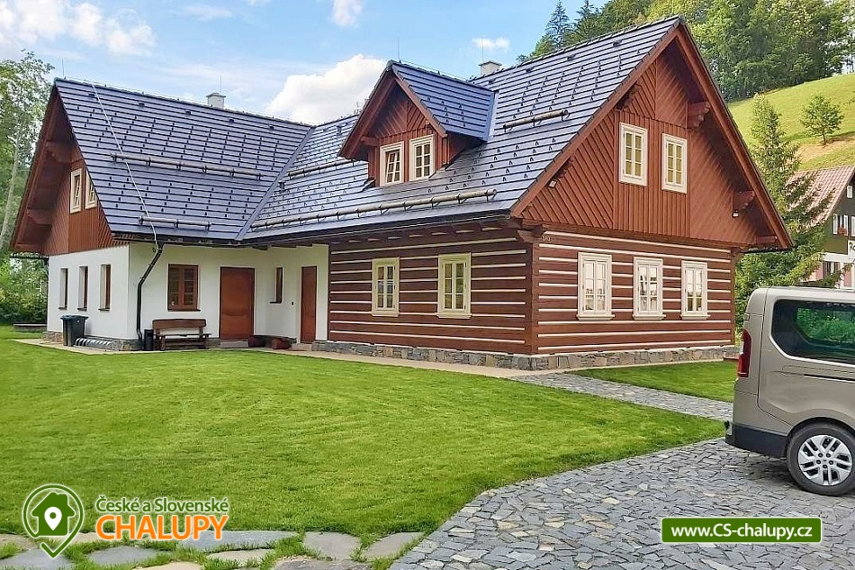 Chalupa Dolní Dvůr s wellness se nachází ve stejnojmenné malebné vesničce uprostřed Krkonoš mezi městy Špindlerův mlýn a Pec pod Sněžkou, ve výšce 640 m nad mořem, 6 km od Vrchlabí. Je ideálním místem pro klidnou rodinnou rekreaci, křižovatkou cykloturistických tras a turistických stezek. V zimě stále vyhledávanějším střediskem zimních sportů s nově vybudovaným ski areálem nabízejícím upravené sjezdové tratě, večerní lyžování, umělé zasněžování, lyžařskou školu a půjčovnu lyžařského vybavení. Těšit se můžete na útulné ubytování v blízkosti lesa a na odpočinek ve wellness s kvalitní vířivou vanou pro 5 osob a infrasaunou vyrobenou na míru pro 4 osoby. Chalupa Dolní Dvůr nabízí ubytování pro 24 osob v samostatně pronajímaných apartmánech a pokojích s vlastní koupelnou a kuchyňkou. Po domluvě je možné pronajmout chalupu jako celek. Celkem je k dispozici 20 pevných lůžek a 4 přistýlky ve 2 apartmánech a 3 pokojích. POPIS: Apartmán č. 1 má kapacitu pro 6 osob, k dispozici je 1x dvoulůžková postel v samostatné ložnici a 1x dvoulůžková postel a 2x přistýlka (rozkládací gauč) ve společenské místnosti. Apartmán č. 2 má kapacitu pro 5 osob, k dispozici je 2x dvoulůžková postel v ložnici a 1x přistýlka (pohovka). Pokoj č. 3 má kapacitu pro 4 osoby, k dispozici je 2x dvoulůžková postel. Pokoj č. 4 má kapacitu pro 5 osob, k dispozici je 1x dvoulůžková postel, 2x jednolůžková postel a 1x přistýlka (matrace). Pokoj č. 5 má kapacitu pro 4 osoby, k dispozici 1x dvoulůžková postel a 1x patrová postel. Dětská postýlka je k zapůjčení. Ve všech apartmánech a pokojích lze využívat plně vybavený kuchyňský kout (varná deska, mikrovlnná trouba, varná konvice a lednička). Dále jsou místnosti vybaveny nábytkem s dostatkem úložného prostoru, jídelním stolem a židlemi a v apartmánech je také TV. Sociální zařízení zahrnuje v každém apartmánu a pokoji a ve wellness místnosti jednu koupelnu se sprchovým koutem a WC. Vytápění je řešeno podlahovým topením a tepelným čerpadlem (digitální termostar v každém pokoji). Všichni ubytování mohou trávit volné chvíle ve společenské místnosti, kde je k dispozici bar a výčepní zařízení, kuchyňský kout, myčka nádobí, televize, kulečníkový stůl (biliár, karambol) a dětský koutek. V celém objektu je k dispozici WIFI připojení na internet. Dále lze relaxovat ve wellness nebo posedět na zahradě v zastřešené pergole s grilem nebo u ohniště. K dispozici je úschovna pro kola a lyže. Parkovat lze přímo u objektu. V okolí chalupy možnost cykloturistiky, koupání, houbaření, běžkování a lyžování. Mezi možnosti koupání patří např.: koupaliště Čistá, aquacentrum Vrchlabí, rybník Vejsplachy, koupaliště Valteřice, aquacentrum Jánské Lázně, přehrada Labská, aquapark Špindlerův Mlýn, rybník U Mlejna, koupaliště Jilemnice, bazén Jilemnice, koupaliště Dolní Kalná, atd. V zimním období jsou k dispozici blízká lyžařská střediska: Ski Family – Dolní Dvůr, Dolní Dvůr – Luisino údolí, Horní Lánov, Strážné, Černá hora – Černý Důl, Vrchlabí – Kněžický vrch, Herlíkovice – Bubákov a další. K výletům v okolí láká Přírodní památka Lom Strážné, Krkonošské muzeum a zámek ve Vrchlabí, vrch Žalý s kamennou Rozhlednou Žalý, Černá hora s 8-místnou kabinkovou lanovkou „Černohorský express“, Stezka korunami stromů Krkonoše, jízda na horských kárách na Benecku a Relaxpark Pec pod Sněžkou. Těšíme se na Vás u nás.