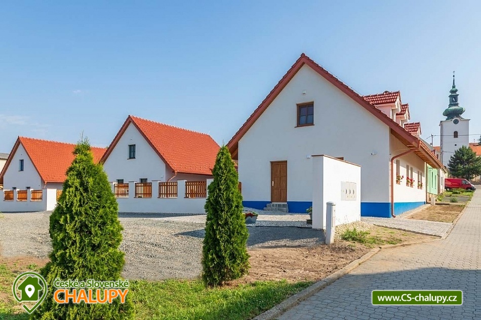 Chalupa Gracie pod Pálavou – Přítluky – vyhřívaný bazén. Nabízíme pronájem naší nově postavené chalupy, která je zařízená ve venkovském stylu s klimatizací a venkovním bazénem 5 x 3 m, který je vyhřívaný tepelným čerpadlem. Chalupa je vhodná i pro rodiny s dětmi. Přítluky jsou malou vinařskou obcí. Čeká vás tady několik sklepů pro večerní koštování, vinic jsou kolem širé lány a víno nám šmakuje jako na celé Pálavě. Místní poklidný ráz je stvořený pro dovolenou. V chalupě pro až 13 osob jsou 3 samostatné pokoje (4+1,4, 4 lůžka), každý pokoj je s vlastním sociálním zařízením (WC, sprchový kout) a TV. Společenská místnost je s jídelnou a vybavenou kuchyní: myčka, mikrovlnná trouba, lednice s mrazákem, horkovzdušná trouba, kávovar Nespresso, rychlovarná konvice, pračka a vinotéka. Ve společenské místnosti jsou vnitřní krbová kamna, která zajišťují vytápění celého objektu a v každém pokoji je navíc el. topení. Chalupa má kryté venkovní posezení (pergola 6x5m) s možností grilování. Ze dvora (rozměr 16x9m) je přístup do kuchyně a společ. místnosti. V celém objektu i na dvoře je přístupná WI-FI. Kapacitu je možné rozšířit o dalších 13 osob v naší sousední chalupě 1M-188. V blízkosti se nachází Novomlýnské nádrže, Lednicko – Valtický areál, Pálavské vrchy, známé vinařské obce Velké Pavlovice, Zaječí, Rakvice, Velké Bílovice, Pavlov, Bulhary, Horní Věstonice, Dolní Věstonice atd., které jsou navzájem propojené cyklistickými stezkami a kde je možnost navštívit velké množství vinných sklepů a rodinných vinařství, kde je možné sjednat i řízenou degustaci vín.
