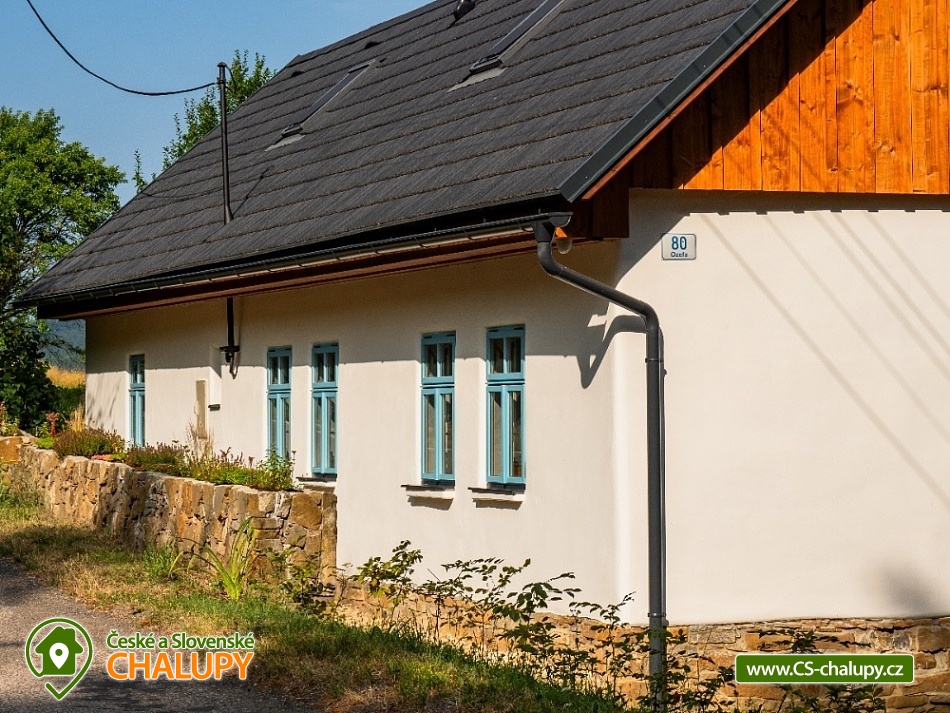 Stylová Chalupa Ozefa s vyhřívaným koupacím sudem se nachází v obci Lopeník v malebném podhůří CHKO Bílých Karpat. Přímo od chalupy lze vydat na turistický výšlap na rozhlednu Velký Lopeník (911 m. n. m.) nebo na Velkou Javořinu (970 m. n. m), nejvyšší horu Bílých Karpat. Chalupa Ozefa nabízí ubytování pro 12 osob ve čtyřech ložnicích. V přízemí je umístěná první dvoulůžková průchozí ložnice s rozkládací pohovkou, která po rozložení nahrazuje plnohodnotné dvoulůžko. Další dvě čtyřlůžkové ložnice se nachází v patře. V jedné ložnici jsou k dispozici tři jednolůžka, jedno z nich lze rozšířit o další výsuvné lůžko. V druhé ložnici je umístěné dvoulůžko a jednolůžko také s dalším výsuvným lůžkem. Z jedné z ložnic se dostanete na galerii, kde si můžete posedět v křesílku nebo na pohodlné rozkládací pohovce sloužící jako přistýlka pro dvě osoby. V přízemí do chalupy vstoupíte velkými francouzskými dveřmi a vejdete do místnosti, kde je k dispozici stolní tenis a dvě lehátka s krásným výhledem na okolní přírodu. Z této místnosti se vstupuje do společenské místnosti, kde vás upoutají krásná velká kachlová kamna. Součástí místnosti je dále obývací prostor se sedací soupravou, jídelní stůl a plně vybavená kuchyň (varná konvice, indukční varná deska, trouba, lednice, automatický kávovar Krups, mikrovlnka a myčka). V celém objektu je k dispozici WIFI připojení na internet. Sociální zařízení zahrnuje jednu koupelnu v přízemí se sprchovým koutem, WC, pračkou a sušičkou a jednu koupelnu v patře se sprchovým koutem a samostatným WC. Vytápění je řešeno v přízemí kachlovým krbem, který vytopí velkou část chalupy, a elektrickým podlahovým topením. V podkroví jsou ložnice vybaveny přímotopy a v koupelnách je elektrické podlahové topení včetně topných žebříků. Venku lze posedět na prostorné dřevěné terase, jejíž součástí je venkovní koupací sud pro šest osob s vyhřívaný dřevem. K dispozici je také ohniště. Děti potěší houpačka, pískoviště, chaloupka na stromě a lanová dráha. Parkovat lze přímo u objektu. V okolí chalupy možnost turistiky, cykloturistiky, koupání, houbaření, rybaření, běžkování a lyžování. V blízkosti je také jízdárna. Mezi možnosti koupání patří např.: aquapark Uherský Brod – Delfín, koupaliště Nivnická Riviéra, koupaliště Starý Hrozenkov, koupaliště Bojkovice, koupaliště Uherský brod, koupaliště Pitín, koupaliště Vlčnov, koupaliště Hluk, bazén Luhačovice – Městská plovárna, Koupaliště Slavičín, atd. V zimním období jsou k dispozici blízká lyžařská střediska: Mikulčin Vrch a Štrbáň. K výletům v okolí láká Muzeum poslední žítkovské bohyně, Hrady a zámky – Buchlov, Buchlovice, Čachtice, Trenčianský hrad, ZOO Lešná, Lázně Luhačovice, Luhačovická přehrada, Ekocentrum Hostětín, Uherský Brod, Uherské Hradiště a Zlín. Těšíme se na Vás u nás.