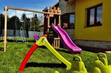 Přímo u oblíbené cyklotrasy je situována naše nově postavená chata Bikehouse, která nabízí nádherný výhled na úpatí Lomnického štítu. Užijte si odpočinek, pohodu a třeba i relax ve venkovní vířivce – koupacím sudu. Celoroční pronájem chaty s kapacitou 12 lůžek. POPIS: společenská místnost s pohodlným prostorným gaučem (přistýlka pro dvě osoby), kabelová tv, krb, jídelní stůl. Plně vybavená kuchyně (elektrická trouba, plynový sporák, mikrovlnná trouba, rychlovarná konvice, chladnička, mrazák, kávovar, myčka nádobí, topinkovač, toastovač a barové posezení). Vstup na venkovní terasu. Tři ložnice v patře. Dvě jsou 2-lůžkové s manželskou postelí, přistýlkou na rozkládacím křesle a vstupem na balkon. Třetí ložnice – manželská postel a dvě přistýlky na rozkládacím gauči. V objektu jsou k dispozici dvě koupelny. Jedna je vybavena vanou a toaletou, ve druhé je k dispozici sprchový kout a pračka se sušičkou. Další toaleta je samostatná. Na terase je posezení s grilem a kotlíkem. Pro děti pískoviště, houpačka, skluzavka, prolézačka, trampolína a hračky. Dále zahradní houpačka a prostorná vířivka. Během pobytu máte k dispozici úschovnu na kola, lyžárnu s vysoušeči bot, připojení na internet i parkování v garáži a oploceném parkovišti. Okolí – Velká Lomnice je výborným výchozím bodem pro výlet do Vysokých Tater. Nedaleko ubytování si užijete zábavu v AquaFun parku Velká Lomnice nebo Tatra Labyrintu. Zahrajete si golf, vyzkoušíte kiting i si uděláte prohlídku historie v Kežmarku díky hradu a muzeu. Pokud se k nám chystáte v zimě proto, abyste si užili super lyžování, na výběr máte střediska v Dolním Smokovci, Tatranské Lomnici i v Kežmarku. Těšíme se na Vás u nás.