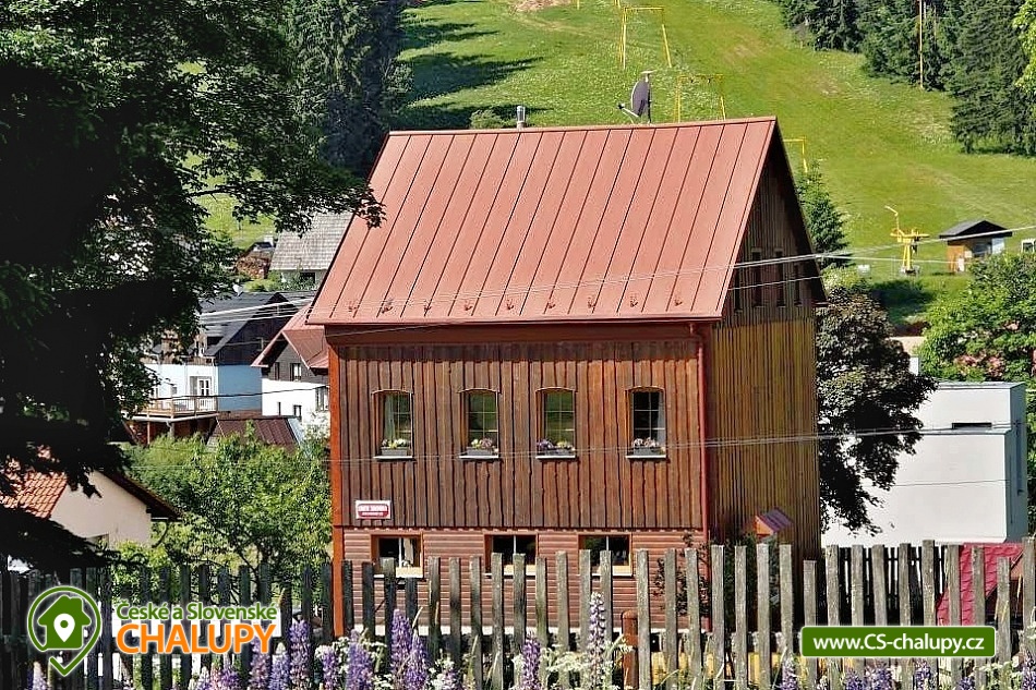 Chata Javorka – Pernink – Karlovy Vary. Chata Javorka nabízí ubytování až 24 hostům v malebném prostředí obce Pernink na vrcholu Krušných hor. Ubytování nabízíme v 6 pokojích, z nichž 2 mají vlastní sociální zařízení. Pro ostatní pokoje se sprchy s WC nachází ve druhém patře a další WC vždy v mezipatře. V chatě je dále k dispozici prostorná společenská místnost s TV/SAT, krbovými kamny a velká společná kuchyň se všemi potřebnými spotřebiči (trouba, plynový sporák, myčka, mikrovlnka) a nádobím. Při vstupu do chaty je dále velká místnost sloužící pro uschování Vašich lyží, kol, kočárků a pod. K dispozici jsou tyto pokoje: 1 x 5 lůžkový s vlastním soc. zařízením, 3 x 4 lůžkový z toho 1 s vlastním soc. zařízením, 1 x 5 lůžkový bez soc. zařízení a 1 x 2 lůžkový pokoj. Na pokojích se nachází letiště i palandy (nové postele i matrace), noční stolky a úložné prostory. Vytápění plynovým kotlem. Výborná dostupnost autem z Ostrova. Parkování pro 7 aut u objektu. Dostupnost autobusem / vlakem z Karlových Varů nebo Ostrova. U objektu je velká (dobře) oplocená zahrada s ohništěm a lavicemi, venkovní pergola s posezením a grilem a venkovní dětské hřiště – houpačka, pískoviště a klouzačka. Jste větší skupinou rodin s dětmi a hledáte objekt, kde byste si mohli užít společné chvíle? V zimě, chcete být kousek od sjezdovky a v létě mít k dispozici terény pro kola i pěší turistiku od nenáročných až po ty náročnější? Pak Vás rádi uvítáme na Javorce kousek od skiareálů Vleflink a Plešivec, uprostřed krušnohorských luk a lesů, kde se společné rodinné zážitky snoubí s rozjímáním a relaxem. V zimě je vlek od chaty vzdálený jen 300 metrů stejně tak jako osvětlené běžkařské kolečko. Nástup na Krušnohorskou lyžařkou magistrálu je 700 metrů vzdálený. V létě se kolem chaty nachází nespočet turistických a cykloturistických tras vedoucích k cílům jako vrch Plešivec, Blatenská rozhledna, Vlčí a Červené jámy, Tisovský vrch, důl Mauritius apod.