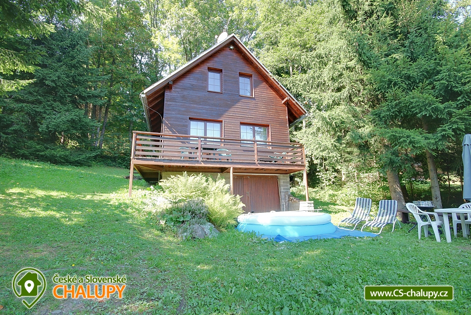 Chata Na Dříši – Deštné v Orlických horách. Pronájem wellness chaty s bazénem a saunou Orlické hory. Ubytování chata s bazénem a saunou Deštné v Orlických horách. V přízemí naší chaty se nachází plně vybavený kuchyňský kout (el. sporák s pečící troubou, mikrovlnná trouba, lednička, kávovar, varná konvice) a obývací pokoj: krbová kamna, jídelní stůl, TV+SAT, DVD přehrávač a rozkládací pohovka brána jako 1x plnohodnotné lůžko a 1x přistýlka. V patře jsou dvě 3-lůžkové ložnice: v první ložnici dvoulůžko a jednolůžko na pohovce, ve druhé ložnici je dvoulůžko a rozkládací sedací souprava brána jako 1 plnohodnotné lůžko. Obě ložnice mají vlastní TV, součástí objektu je šatna a komora. V přízemí je koupelna s vanou, sprchou a WC. Topení je zajištěno krbovými kamny na dřevo a el. přímotopy. V suterénní místnosti je k dispozici finská sauna pro 2-3 osoby (nově postavená v srpnu 2017) a druhé samostatné WC. U objektu je volné prostranství s nadzemním kruhovým bazénem s průměrem 3 m, terasa, zahradní nábytek, gril a ohniště s posezením. Parkování je možné pro až 3 vozidla přímo u objektu, v zimě v případě většího množství sněhu je parkování zajištěno cca 200 m od chaty. Chata se pronajímá vždy jako celek a to jednomu zájemci. Nemůže se tak stát, že by během Vaší dovolené byl obsazen některý z pokojů někým jiným. To zajišťuje maximální klid a soukromí v průběhu Vaší dovolené.