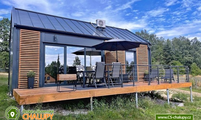 Designová chata Raťák v klidné chatové osadě pár kroků od Ratmírovského rybníka s travnatou pláží, vodními radovánkami (koupání, paddleboard, šlapadla), sportovním vyžitím (kurt na tenis, volejbal, beachvolejbal, stolní tenis, trampolíny) a zázemím restaurace. Chata stojí na vlastním travnatém pozemku z jedné strany lemovaném lesem. Oblast je vyhlášenou rekreační lokalitou, kde kromě četných rybníků naleznete spoustu cyklostezek s nenáročným lehce zvlněným terénem, řadu památek a přírodních zajímavostí v oblasti České Kanady. Možnost nákupů a kulturního vyžití v blízkém Jindřichově Hradci. Chata k pronajmutí poskytuje ubytování pro až 5 osob v 1 ložnici. Chata je plně vybavená pro váš pobyt a pojme až 5 lidí (manželská postel v samostatné ložnici), galerie s 2 lůžky a 1 lůžko na rozkládací pohovce. POPIS: 1 samostatná ložnice (manželská postel), obývací pokoj s kuchyňským koutem, patro na spaní (galerie) s 2 lůžky. Plně vybavená kuchyně: myčka, lednice, mikrovlnka, kávovar na kapsle, el. sporák, trouba, překapávač, topinkovač, rychlovarná konvice a další potřebné kuchyňské vybavení. Další vybavení: TV, satelit, vysavač, sušák na prádlo. Koupelna se sprchovým koutem a WC. Vytápění: Tepelné čerpadlo. Parkování: 2 parkovací místa přímo u objektu. Na terase můžete při západu slunce grilovat na elektrickém grilu. Okolí: Koupání a vodní sporty v Ratmírovském rybníku (paddleboard, loďky, šlapadla), sportovní vyžití v přilehlém rekreačním areálu (tenis, beach volejbal, stolní tenis, trampolíny), cykloturistika – hustá síť cyklostezek v celé oblasti České Kanady, hrad Landštejn, zámek Červená Lhota, bizoní farma s restaurací, spousta rybníků v blízkém okolí, historická města v blízkém okolí (Jindřichův Hradec, Slavonice, Telč). Těšíme se na Vás u nás.