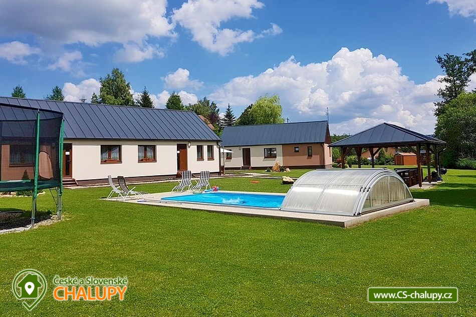 Apartmánová Chata u Potoka s venkovním bazénem se nachází na okraji obce Dolní Moravice v části Horní Moravice, která je obklopena nedotčenou přírodou chráněné krajinné oblasti Jeseníků. Blízké okolí nabízí spoustu možností pro odpočinek, ale i aktivní dovolenou ve všech ročních období. Milovníci pěší turistiky rádi navštíví Karlovu Studánku s léčivými prameny a celoročním termálním bazénem. Cyklisti ocení nedaleký Express Bikepark Karlov. V zimním období je výhodou těsná blízkost lyžařských středisek Karlov, Malá Morávka a Dolní Moravice a mnoha běžkařských tras, ze kterých je možné nastoupit na hlavní běžecké trasy po Jesenické magistrále. Apartmány u Potoka nabízí ubytování pro až 24 osob ve třech samostatně pronajímaných osmilůžkových apartmánech, celkem je k dispozici 14 pevných lůžek a 10 přistýlek. Všechny apartmány mají vlastní kuchyň, sociální zařízení a venkovní posezení. První dva apartmány umístěné ve společné budově mají k dispozici dvoulůžkovou ložnici s 1x dvoulůžkem, třílůžkovou ložnici s 1x patrovou postelí a 1x jednolůžkem, 1x přistýlku (rozkládací pohovka) v obývacím pokoji a 2x přistýlky (matrace) v podkroví. Ve třetím apartmánu nacházejícím se v samostatné budově jsou k dispozici dvě dvoulůžkové ložnice s 1x dvoulůžkem, 2x přistýlky v obývacím pokoji (rozkládací pohovka) a 2x přistýlky (matrace) v podkroví. Zapůjčit si lze dvě dětské postýlky a dětskou jídelní židličku. Všechny tři apartmány jsou vybavené a dispozičně řešené stejně. V přízemí jsou umístěné ložnice, obývací pokoj, kuchyň a koupelna. Z obývacího pokoje vedou schůdky do podkroví s přistýlkami. Součástí obývacího pokoje je sedací souprava, TV, úložné prostory, jídelní stůl a plně vybavená kuchyň (rychlovarná konvice, lednice, mikrovlnná trouba, sklokeramická deska, utěrky, jar a veškeré nádobí). K dispozici je také povlečení a ručníky. Sociální zařízení v každém apartmánu zahrnuje jednu koupelnu se sprchovým koutem, umyvadlem a toaletou. Vytápění je řešeno elektrickými přímotopy, které jsou v každé místnosti apartmánu. V celém objektu je k dispozici WIFI připojení na internet. Z obývacího pokoje každého apartmánu je přímý vstup na venkovní terasu s posezením a slunečníkem. Zapůjčit si lze gril na dřevěné uhlí. Pro všechny ubytované je také k dispozici posezení u ohniště umístěného u Moravického potoka nebo v zastřešeném altánu. V teplém počasí každý ocení zastřešený bazén. Malí návštěvníci se mohou těšit na trampolínu, pískoviště a skluzavku. Parkovat lze přímo u objektu. V okolí apartmánů možnost turistiky, cykloturistiky, koupání, houbaření, běžkování a lyžování. V blízkosti je také minigolf. Mezi možnosti koupání patří např.: Bruntál – Wellness centrum , Rýmařov – Aquacentrum Slunce, Edrovický rybník, bazén Břidličná, Bazén Karlova Studánka, koupaliště Bruntál, rybník Andělská Hora, Rybník Tvrdkov, vodní nádrž Oskava, Vrbno pod Pradědem – rybníky, koupaliště Libina, vodní nádrž Slezská Harta, atd. V zimním období jsou k dispozici lyžařská střediska: Kopřivná – Malá Morávka, Avalanche, Čertova hora, Nová ves u Rýmařova, Myšák – Karlov pod Pradědem, Karlov, Pawlin – Karlov pod Pradědem a další. K výletům v okolí lákají Rešovské vodopády, stezka podél Bílé Opavy, bobová dráha Karlov, Praděd, Rejvíz a Mechová jezírka, hrad Sovinec, Pradědova galerie nebo město Šumperk. Těšíme se na Vás u nás.