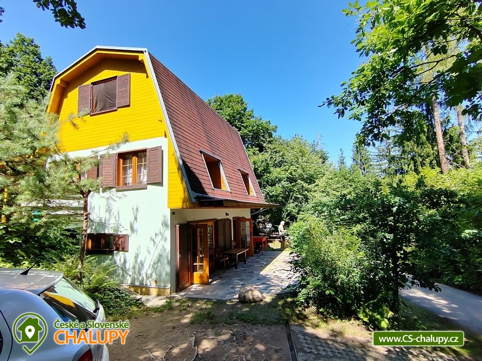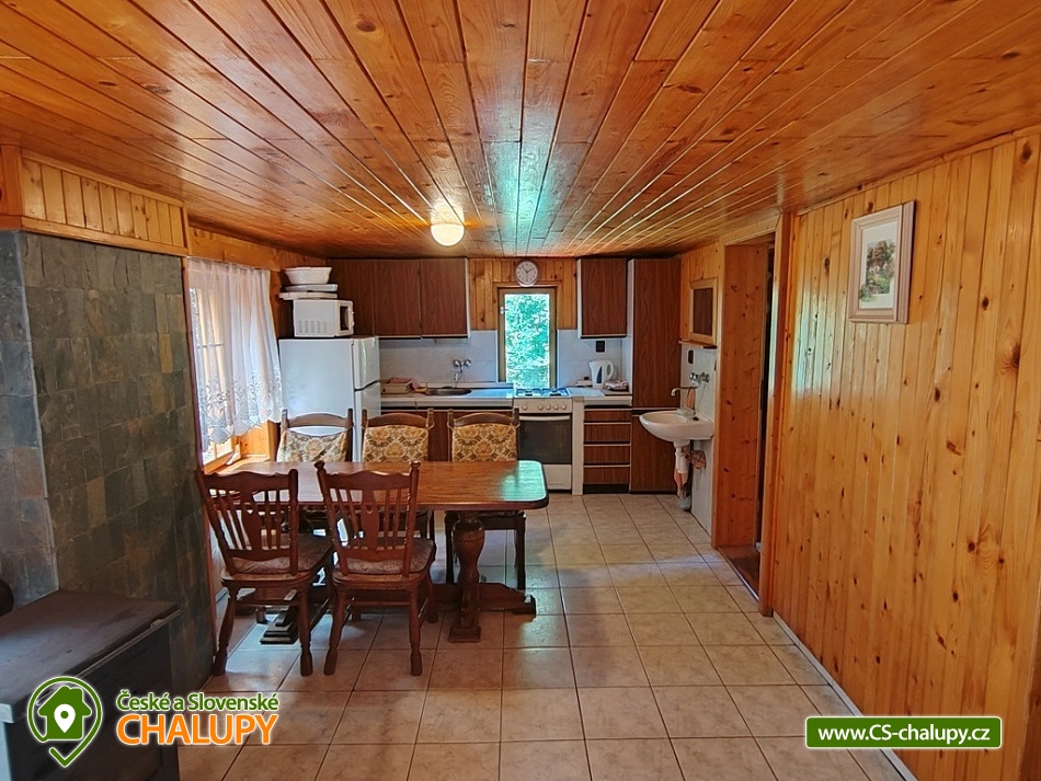 Pronájem chata na Vranovské přehradě – Chmelnice – Oslnovice. Ubytování Vranovská přehrada. Moravský Jadran, tak je oprávněně nazývána jedna z nejatraktivnějších turistických oblastí naší republiky Vranov a okolí. Obrovské množství kulturních památek a akcí, stejně jako sportovní možnosti (turistika, cykloturistika) nabízí zdejší Národní park Podyjí. Kolem chaty je velký soukromý pozemek (1200m2). Každá rodina má proto samostatné posezení a dostatek vlastního soukromí. Parkování pro 3 osobní vozy přímo u chaty pro ubytované zdarma (nebo také u silnice). Výborná dopravní přístupnost. Nachází se hned u příjezdové silnice z Oslnovic, po její levé straně za zatáčkou pod kopcem, asi 100 m před restaurací (chata č. 208). Popis místností: A – PŘÍZEMÍ: obytná místnost, rozkl. patrová postel + postel, kuchyňská linka s nádobím, T+S voda, el. 2 – vařič, rychlovar. konvice, lednice s mrazákem. Dále samostatné WC a koupelna se sprchou pro celou chatu, v chodbě vestavné skříně, dětská postýlky a židlička. B – PATRO: obytná místnost, rozkl. sedačka 4 lůžka, kuchyňská linka s nádobím, el. pečící trouba, plynový varný panel, velká lednice s mrazničkou, mikrovlnná trouba, T+S voda, rychlovar. konvice, umyvadlo, bar. TV (+ SAT – Astra), krbová kamna. C – PODKROVÍ: 1) obytná místnost, rozkl. sedačka, 3 postele, kuchyňská linka s nádobím, kombin. plyn+el, sporák, lednice s mraz. , S voda, rychlovar. konvice, umyvadlo, bar. TV (+ SAT – Astra) 2) ložnice, 4 postele. Dále samostatné WC. Každé patro je zcela samostatné a přístupné ze společného schodiště. Dohromady se v celé chatě nachází 12 pevných lůžek a dalších 5-6 spacích míst na rozkládacích sedačkách v celkem 4 různých pokojích. Voda v celé chatě je pitná. K chatě patří i velký sklep. Novinka: Wi-fi internet v celé chatě zdarma! Společné: soukromé volejbalové hřiště (vhodné na volejbal, nohejbal; míč doporučujeme vzít s sebou) jen pro ubytované na naši chatě, vol. síť, stolní tenis + pálky a míčky, ruské kuželky, nemincový stolní fotbal, gril s udírnou, ohniště se dřevem, houpačka, zahradní nábytek, venkovní sprcha, sklep, 2 pramice (vše zahrnuto v ceně pobytu!!!). Chata se nachází v bezprostřední blízkosti přehradní nádrže (100m od písečné pláže), v malebném údolí s výhledem na zříceninu hradu Cornštejn, v rekreační oblasti Chmelnice, jedné z nejlákavějších částí Vranovské přehrady. Rozlehlá travnato-písčitá pláž s pozvolným vstupem do vody je ideální pro koupání s dětmi. Na své si zde přijdou i rybáři. Rádi Vám doporučíme i náš 2. sousední nedaleký objekt 1M-078 = Chatečka u rozdováděné veverky pro 2 až 5 osob.