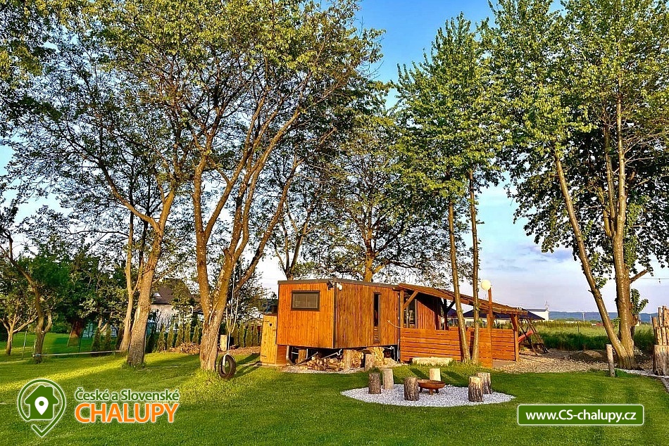 Glamping – komfortně vybavená maringotka se saunou, vířivkou a bazénem se nachází v obci Bílá Třemešná na klidném místě u lesa a přehrady Les Království v Podkrkonoší. V blízkosti maringotky lze navštívit město Dvůr Králové nad Labem se známým ZOO Safari parkem. Maringotka poskytuje ubytování až pro 5 osob. Spaní je součástí maringotky, kde jsou k dispozici 4 plnohodnotná lůžka + přistýlka. Po domluvě lze pozemek poskytnout pro více rodin nebo skupinu přátel, kteří si mohou postavit stan, dojet s karavanem či obytným vozem. Celá maringotka je klimatizovaná, vytápěná a vybavena moderní kuchyní (veškeré nádobí, mikrovlnná trouba, lednice, indukční deska a konvice na vodu, kávovar, atd) a menším posezením. V celém objektu k dispozici WIFI. Sociální zařízení zahrnuje plnohodnotnou koupelnu, kde je toaleta, sprcha, WC, umyvadlo a fén na vlasy. Vytápění je řešeno kvalitní klimatizací a přídavným samostatným topidlem v koupelně. Kolem maringotky se rozléhá kompletně oplocená, tedy bezpečná pro děti, zahrada o velikosti 1800 m. Posedět lze na venkovní zastřešené terase, která navazuje na maringotku. K dispozici jsou venkovní lehátka, gril Weber a velké ohniště s posezením. Užívat si lze venkovní wellness s prostornou finskou saunou s odpočívárnou a velmi oblíbený hot tube s jaccuzi. Relaxovat je možné také v hamace pod stromy. Děti se mohou těšit na dětský domeček, velkou trampolínu, několik houpaček, 6m šplhací lano a další různé hry, nově na lanovku. Parkovat lze přímo u objektu. Kolem maringotky je možnost turistiky, cykloturistiky, koupání, houbaření, rybaření a lyžování. V blízkosti je také jízdárna. Pro zpestření pobytu lze domluvit další doplňkové služby jako jsou masáže přímo v maringotce, vyhlídkové lety, zapůjčení lodě na Labe nebo zapůjčení skákacího hradu pro děti. Mezi možnosti koupání patří např.: přehrada Les Království, rybník Dubina – Bílá Třemešná, Dvůr Králové nad Labem – Tyršovo koupaliště, koupaliště Třebihošť, koupaliště Mostek, koupaliště Lanžov, koupaliště Miletín, Vřešťovský rybník, koupaliště Hořice – Dachova, koupaliště Pecka, atd. K výletům v okolí láká také Hospital Kuks, kopec Zvičina, hrad Pecka, Ratibořice, Pevnost Josefov, Jánské Lázně se stezkou korunami stromů, Krkonoše, Adršpašské a Teplické skály a Český Ráj. Těšíme se na Vás u nás.