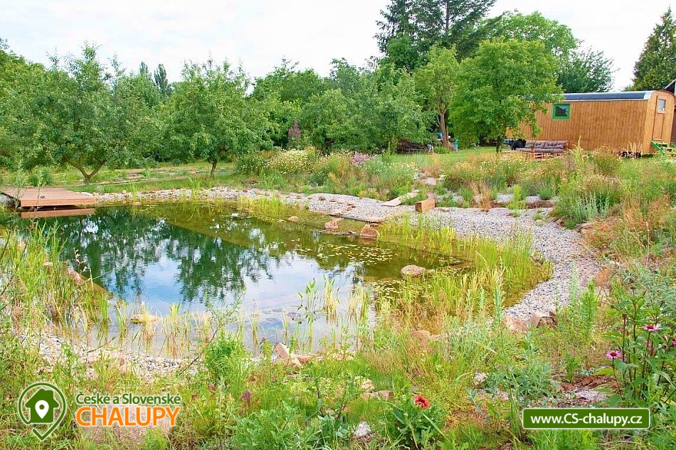 Maringotka nad jezírkem se nachází obci Heřmanov nedaleko města Rakovník a je součástí areálu farmy Šťastná Zahrádka. Těšit se můžete na netradiční ubytování, zahradu plnou květin a stromů, koupání v přírodním jezírku, relax v houpací síti, hraní šachů pod ořešákem či jen poslouchání zvuků přírody. Maringotka nad jezírkem nabízí ubytování pro 5 osob. POPIS: Maringotka je rozdělena na spací a obývací část. Ve spací části je umístěná 2x palanda a 1x velká manželská postel 230×200 cm, která může sloužit pro dvě dospělé osoby a jedno dítě. Obývací část zahrnuje jeden menší stoleček a dvě židle a plně vybavený kuchyňský kout (indukční deska, kávovar, dřez a pitná studená i teplá voda, sezonní zelenina či zavařeniny a mycí prostředky na nádobí). Dále jsou k dispozici základní surovinami jako je třtinový cukr, himalájská sůl, barevný pepř, olivový olej a vinný ocet. Pro volné chvíle jsou v maringotce k zapůjčení karty, 3D piškvorky, logic, šachy a knihy. Sociální zařízení zahrnuje jednu vnitřní koupelnu se sprchovým boxem, separačním WC a umyvadlem se zrcadlem. Vytápění je řešeno v chladných dnech přímotopem za příplatek. K dispozici jsou veškeré lůžkoviny, ručníky, sprchový gel a šampon a dřevo na oheň. V objektu není možné se připojit na WIFI, ale mobilní sítě jsou k dispozici. Venku lze posedět na paletovém gaučíku ve stínu švestky nebo u stolečku pod ořešákem. K dispozici je ohniště a venkovní gril. Zeleninu na gril si můžete natrhat přímo na záhonech. Chvíle odpočinku si lze užívat v houpací sítí nebo křesle a pro osvěžení slouží přírodní jezírko o velikosti 150 m². Děti se mohou těšit na obrovské pískoviště se skluzavkou, ale nejdříve musí zdolat velkou hroudu hlíny pomocí dřevěného žebříku. Dále je pro ně připravený paletový dětský dům, kde najdou domeček pro panenky, gaučík, kuchyňku a tabuli na křídy. Dále můžete využít houpačky a bránu na fotbal. Pokud máte rádi aktivní odpočinek, tak po domluvě můžete vykonávat různé zahradnické práce (např. sázet, plít, sekat apod.) a za odměnu si nasbírat různé ovoce a zeleninu. Parkovat lze přímo u objektu. V okolí maringotky možnost cykloturistiky, turistiky, houbaření, rybaření a koupání. V blízkosti jsou tenisové kurty. Mezi možnosti koupání patří např: Velký rybník Jesenice, koupaliště Rakovník, Rakovník – Tyršovo koupaliště, Bucký rybník, plavecký bazén Žatec, atd. Do půl hodiny cesty autem můžete navštívit spoustu zajímavých a krásných míst. K výletům láká Zámek Krásný Dvůr se zámeckým parkem, Zámek Chyše, Kapucínské, Přílepské, Petrohradské a Krtské skály ukryté ve zdejších lesích a se stezkami pro horolezce, Pohádkový lom Bedlno, Královské město Rakovník, Železniční muzeum v Lužné u Rakovníka s možností letní jízdy parní lokomotivou, Zřícenina hradu Krakovec nebo Hrad Křivoklát. Těšíme se na Vás u nás.