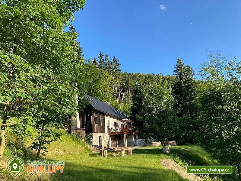 Medvědí chata pod Lysou horou – Ostravice – ubytování CHKO Beskydy. Naše Medvědí chata se nachází v nádherném místě na samotě u lesa v krásném a tichém prostředí. Uvnitř spodní části chaty najdete plně vybavenou kuchyňskou linku (sklokeramická deska, el. trouba, lednička s mrazákem, mikrovlnná trouba, rychlovarná konvice, toustovač, topinkovač), prostorný kuchyňský ostrůvek s barovým posezením a jídelnu s velkým srubovým posezením. V obývací části naleznete dvě sedačky s velkou televizí přímo u krbu, další rozkládací sedačku přímo před krbem, retro koutek s gramofonem a spoustou desek pro romantické večery či plně funkční klavír. Jako srdce a dominanta celé chaty se zde pyšní velký rohový krb, usazený v břidlici, vybízející k romantickým večerům u praskajícího dřeva. Příjemné chvilky také můžete trávit v retrokoutku s gramofonem a nebo si zahrát na klavír. Kuchyň s jídelnou a s obývací částí tvoří jednu velkou, prostornou místnost, z které se dostanete na krásnou, slunnou terasu. Na terase je pro Vás připraveno příjemné posezení, lehátka a možnost využití grilu. V tomto patře rovněž najdete samostatné WC a koupelnu s prostornou vanou. O teplou vodu se vám postará velký 250 litrový bojler s rychlým ohřevem vody. O maximální pohodlí se postará elektrokotel, který vytápí celou chatu, topení kombinované (elektrické, krbová kamna). V objektu je Wi-Fi připojení na internet. Voda v objektu je z krásného, horského pramene, čistá a průzračná, ale není označena jako pitná, proto doporučujeme vodu balenou. Variantou je také studánka s pitnou vodou, která se nachází 3 minuty pěšky od Medvědí chaty. S SUV možnost parkovaní 50m od chaty, parkovat můžete i 150 m pod chatou. V zimních měsících se k chatě dostanete pouze se sněhovými řetězy. Během ubytování u nás si budete připadat jako v pohádce, díky krásnému osvětlení celé příchozí cesty, tak i chaty samotné. Při pohledu z kteréhokoli okna totiž uvidíte lesy, hory nebo velmi často srny, které se rády pasou na louce pod chatou. V okolí chaty je Lysá hora, Golfová hřiště, Bazén Sepetná, Lanové Bludiště Opičárna, Beskydský pivovárek Ostravice, Boboffka, Lanová dráha, Pustevny, Stezka Valaška, Ruma Sport Ostravice, Golf club Ostravice, Ski Areály a mnoho dalších.