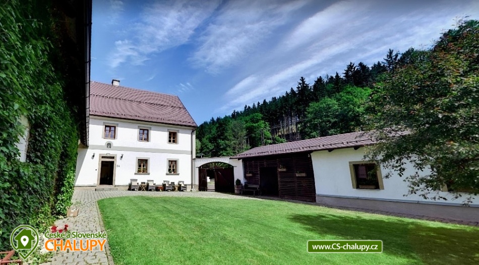Peckův mlýn – ubytování v soukromí – Blažim – Konstantinovy Lázně. Nabízíme Vám chalupu k pronájmu, která nabídne útulnost a pohodu dávných let. Ten, kdo miluje samotu, ticho hlubokých lesů, procházky nebo cykloturistiku bude spokojen s tím, co nabízí zdejší příroda a náš mlýn. Objekt se pronajímá 1 skupině klientů v soukromí s kapacitou 22 lůžek a 4 přistýlek. Ve všech 3 poschodích objektu najdete plně vybavenou kuchyňskou linku (el. sporák, lednička, mikrovlnná trouba, konvice, kávovar). V přízemí je dále automatická pračka, elektrická trouba a myčka nádobí. V patře chalupy jsou tyto pokoje: čtyřlůžkový pokoj, třílůžkový pokoj, dvoupokoj 2 + 3 lůžka a dvoulůžkový pokoj. Ve druhém patře je dvoulůžkový pokoj a 2x třílůžkový pokoj. Pokoje jsou vytápěny elektrickými přímotopy a krbovými kamny na dřevo. V objektu je celkem 9 WC a 5 koupelen. Společenská místnost je s kachlovými kamny, dále TV, rádio a satelit. Dětský koutek – koberec – 4m² s hračkami. Další společenská místnost zahrnuje kulečník, stolní tenis a šipky. Nabízíme i sálek v mysliveckém stylu pro 30 osob určený k rodinným oslavám či společenským akcím. Ve společenské místnosti si můžete zapůjčit turistické mapy a informačních brožurky o Konstantinolázeňsku, Tepelsku, Manětínsku i Tachovsku. K dispozici je kryté venkovní posezení s grilem, zahradní nábytek u rybníka, přírodní ohniště a dětský koutek s pískovištěm i houpačkou, skluzavkou, zahradním domečkem a trampolínou. Po celý pobyt máte volný přístup do turbo solária. Můžeme Vám domluvit i masáž na pokoj. K dispozici jsou tři uzamykatelné garáže, navíc lze samozřejmě parkovat i před objektem. Peckův mlýn se nachází v Plzeňském kraji, 10 km od Konstantinových Lázní a 40 km od Plzně. Náš objekt je vhodný ke strávení poklidné rodinné dovolené nebo třeba jen k víkendovému setkání přátel. U chalupy je velká zahrada s rybníkem molem a pramicí. Na zahradě pevný parket pro tanec, rodinné oslavy nebo sportovní vyžití. Možnosti koupání v blízkém okolí: Betlémský rybník, lom Okrouhlák, Luhovský rybník, přehrada Hracholusky, koupaliště Manětín nebo přehrada Žlutice.
