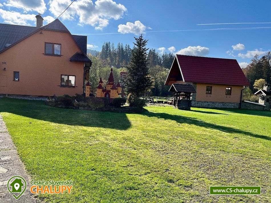 Dům je na částečně oploceném travnatém pozemku o rozloze 10000 m2, který je možno využít ke hrám či relaxaci. Pozemek je ohraničen řekou Bečvou, jejímž údolím vede nově vybudovaná cyklostezka spojující obce Horní Bečva s městem Rožnov pod Radhoštěm. Na kolech tedy můžete pohodlně vyrazit do krásné přírody, jež nabízí Beskydy, nebo za koupáním do nedalekého biotopu cca 400m od areálu nebo koupaliště i bazén v Rožnově pod Radhoštěm, také na přehradu na Horní Bečvě