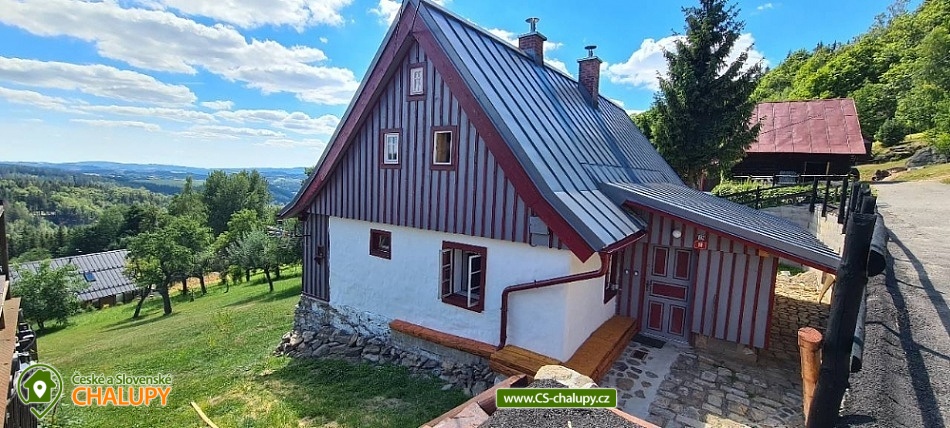 Roubenka Jizerka – Český Šumburk – ubytování CHKO Jizerské hory. Nabízíme pronájem roubené chalupy pro až 8 osob nacházející se v Jizerských horách, v klidné osadě Český Šumburk, 5 km od města Tanvald. V přízemí zrekonstruované horské chalupy se nachází vstupní krytá chodba, předsíň, WC, koupelna s vanou, světnice s krbovými kamny, TV a kuchyň s kompletním vybavením (lednička s mrazákem, mikrovlnná trouba, varná konvice, sporák s grilem, toustovač). V 1. patře jsou 2 pokoje, kam se vchází po dřevěném schodišti z chodby (jeden 20m2 – čtyřlůžkový a jeden menší třílůžkový s možností přistýlky). Přímo nad schody je útulná odpočívárna cca 15m2 s křesly, stolkem a úložnými prostory. Součástí ubytování je v přízemí technická místnost s možností úschovy kol nebo lyží (v části dřevníku za chalupou). Vytápění je krbovými kamny na dřevo v jedné místnosti dole v přízemí, jako alternativa hlavně v noci je objekt vytápěn elektrokotlem. Chalupa je vybavena pohodlným nábytkem, který je vkusně doplněn tradičními prvky. Chalupa se nachází přímo u lesa u slepé, neprůjezdné cesty. Parkování je na vlastním pozemku pro 2 auta, více aut po domluvě. U chalupy je terasa s výhledem, možnost letního posezení, relaxování. Pod chalupou je ohniště se stolkem a posezením. Z okolí chalupy je nádherný výhled do kraje jižním směrem – na Bozkov, Držkov až ke Kozákovu. V létě je možné na kole i pěšky absolvovat výlety za krásami Jizerských hor a blízkých Krkonoš. V blízkosti turistické trasy i cyklotrasy, v zimě je možné lyžování 1,5 km od chalupy.