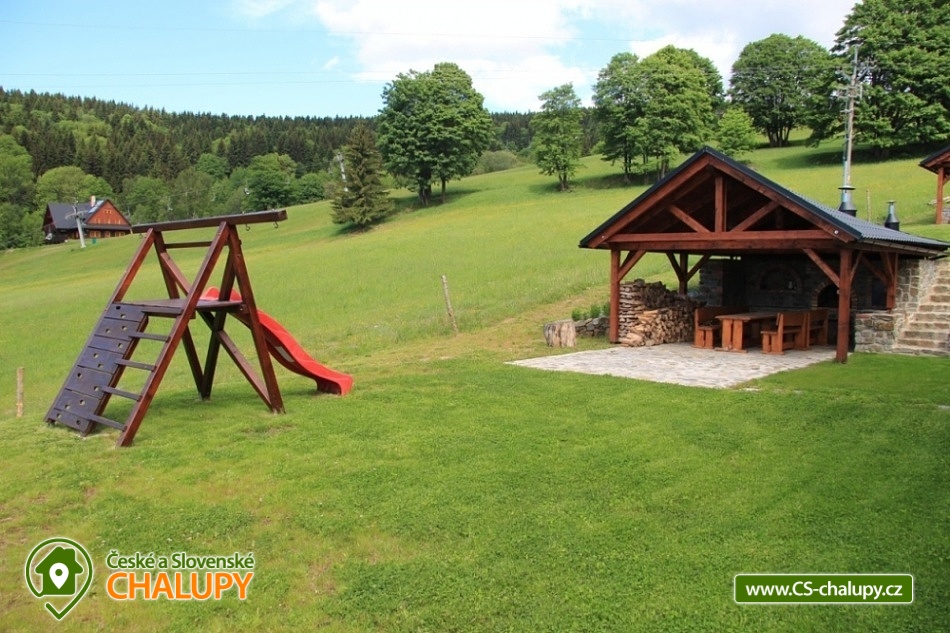 Roubenka Rozárka I – Velké Vrbno – Jeseníky. Roubená chalupa se nachází rozhraní Hrubého Jeseníku, Kralického Sněžníku a Rychlebských hor v obci Velké Vrbno v nadmořské výšce 820 m. je obklopena nádhernou přírodou s mimořádně čistým horským vzduchem. Roubenka se nachází mezi sjezdovkami Skiareálu Paprsek-Olšanka. V roubence je možno ubytovat až 12 osob ve třech samostatných pokojích v podkroví. V přízemí je velký obývací pokoj s kuchyní, krásnými kachlovými kamny s plochou na ležení a jídelním koutem, koupelna s infra-saunou, WC a lyžárna. Kuchyně je moderně vybavena indukční varnou deskou, myčkou nádobí, mikrovlnou troubou s grilem, varnou konvicí a kávovarem. V obývacím pokoji je pohodlná rohová sedačka a velká televize s možností satelitního příjmu. K dispozici je také blue-ray přehrávač pro dlouhé zimní večery. V lyžárně je nástěnný radiátorový vysoušeč bot a velký stojan na lyže a snowboardy. Ve všech pokojích jsou dvě samostatné postele a jedno manželské dvoulůžko. Všechny pokoje jsou vybaveny velkou sat TV a WiFi. Jeden z pokojů má také blue-ray přehrávač. Pro maximální pohodlí jsou k dispozici tři koupelny. Objekt je vytápěn elektrickým podlahovým topením a kachlovými kamny. Roubenka má vlastní studnu. Voda z hloubky 56m má parametry kojenecké vody. V létě je pro obě roubenky k dispozici 7 m dlouhý bazén vyhřívaný tepelným čerpadlem. Vedle roubenky je postaveno zastřešné posezení s krbem a udírnou a malé dětské hřiště. K dispozici je zastřešené posezení s krbem a udírnou. Za 1 až 2 hodiny jsou perfektně vyuzené párky a klobásy. Roubenka se nachází mezi sjezdovkami Skiareálu Paprsek-Olšanka. Z levé strany je vzdálena 80 m od dvousedačkové lanovky na Paprsek, z pravé strany je ve vzdálenosti 60 m lyžařský vlek Olšanka dlouhý 800 m. U nástupní stanice na sedačkový vlek je velká horská chata Vindoška. Zde je možné se v období provozu vleku stravovat. Horská chata Paprsek v nadmořské výšce 1022m je v provozu celoročně. Areál disponuje čtyřmi sjezdovkami o délkách 800-1300 m a největším SNOW PARKEM v České republice. K dispozici je lyžařská škola i školička, a také půjčovna lyží a snowboardů. V okolí je upravováno rolbou několikrát týdně přes 70 km běžeckých lyžařských tratí, včetně lyžařských stop na Polském území. V létě je možné využít množství cyklistických tras v oblasti nebo vychutnávat klid a pohodu této lokality a podnikat výlety do blízkého či vzdáleného okolí.