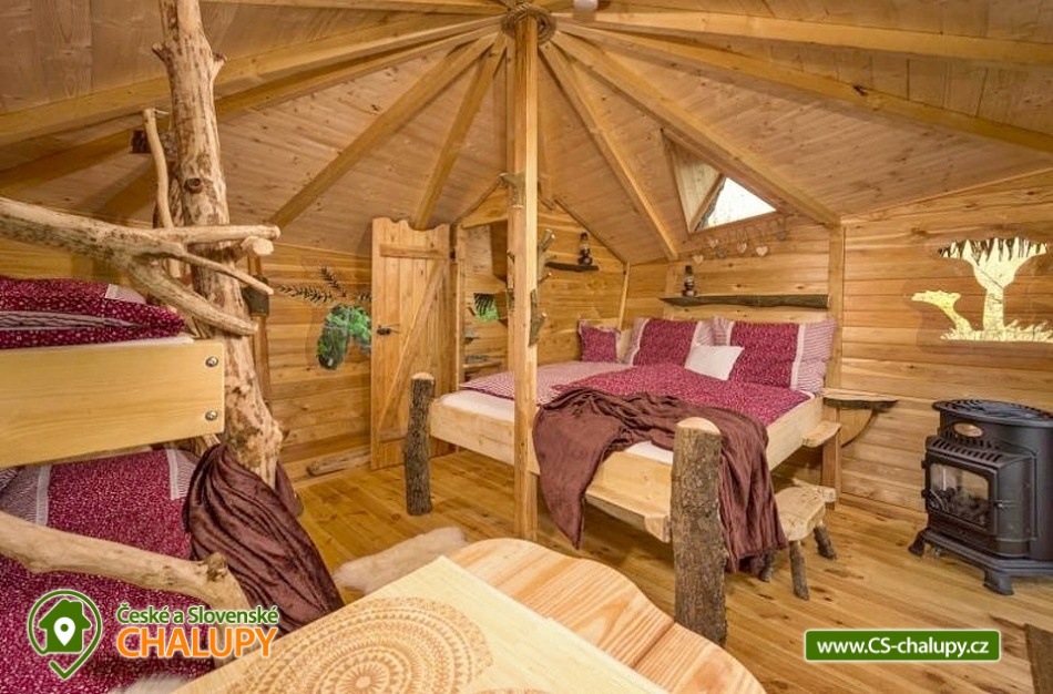 Treehouse Emanuel – Ještěd – Glamping. Treehouse Emanuel nabízí unikátní typ trávení dovolené vysoko v koruně majestátního smrku, s úžasným průhledem z prostorné terasy na dominantu hory Ještěd a do ševelících listů stromů hustého lesa. Emanuel má nádherně nepopsatelnou omamnou lesní atmosféru. Užívat si můžete také venkovní saunu. Emanuel se nachází nedaleko obce Křižany a zaručuje absolutní soukromí v dosahu nejlepších atrakcí Libereckého kraje. Treehouse Emanuel je bez elektrické energie, přesto luxusně vybaven. Je postavený v dokonalém souladu s okolní hornatou přírodou a připravený poskytnout maximální komfort tak, abyste byli ze zážitkového ubytování skutečně „na větvi“. Emanuel je určen především pro milovníky lesní atmosféry. Těšit se můžete na chvíle v srdci přírody, kdy nebudete nikým a ničím rušeni. Prostor poskytuje příjemné ubytování se snídaní až pro 4 osoby (z toho max. 3 dospělí) – celkem pro 2 osoby na manželském lůžku s výhledem do korun stromů přímo z postele, a 2 osoby na útulné patrové posteli. Treehouse je vybavený kuchyňským koutem s jednoplotýnkovým vařičem, malou lednicí, kompletní sadou nádobí a jídelním stolkem s lavicí. Po domluvě lze naplnit lednici vyzrálým naloženým masem, grilovací zeleninou nebo marinované sýry na gril s rajčátky. Ráno pro vás může být připravena snídaně (čerstvé pečivo, sýry a uzeniny, poctivý jogurt s cereáliemi nebo míchaná vejce s cibulí a slaninkou a k tomu domácí čaj nebo vynikající káva). Zatopit si můžete ve stylovém litinovém krbu s automatickou funkcí, který večer dokreslí útulnou atmosféru a spolehlivě vyhřeje treehouse v chladnějších nocích. Objekt není napojen na elektřinu ani vodu, přesto si večer lze posvítit led svítidly a vykoupat se můžete v přírodní lesní sprše se studenou vodou nedaleko vyhlídkového posedu. Voda do přírodní sprchy je čerpána z pramene přímo na pozemku. Zásoba pitné vody je samozřejmostí. V korunách stromů, se také nachází ekologické WC. Tradiční kadibudka v soukromí lesa se nachází nedaleko. Během ubytování je k dispozici káva, čaj, cukr, sůl, koření, smetana, ručníky, osušky, vymazlené chodící spací pytle (pohodlné posezení na terase i za chladnějších nocí), svíčky, pepo, zapalovače a knihovnička. Wellness v srdci přírody si lze užívat v privátní sudové sauně s kamny na dřevo. Venkovní posezení na stylovém lesním nábytku je doplněno o ohniště a grilovací mříž. Dřevo si můžete naštípat sami. Sekyrka a pilka je k dispozici. K prozkoumávání okolí poslouží dalekohled, kterým dohlédnete až na vrchol Ještědu. K pozorování si můžete udělat výbornou kávu, kterou si připravíte v moka konvičce. Večer si můžete zpříjemnit s některou ze zábavných stolních her nebo můžete skočit do luxusních spacích pytlů Selkbag a se sklenkou pozorovat noční Ještěd i při chladnějších dnech. Vyzkoušet můžete i svůj balanc na Slackline, nebo svoji pevnou ruku při lukostřelbě. Parkovat lze 800 m od Treehousu. V okolí Treehousu možnost turistiky, cykloturistiky, koupání, houbaření, rybaření a lyžování. V blízkosti je také jízdárna, golfové hřiště a in -line stezka. Nedaleko Treehousu se nachází Lesopark Horka – volnočasový areál pro celou rodinu. Po domluvě lze zajistit vyhlídkový let anebo jízdu na koloběžkách z Ještědu, kolem treehousu až do Kryštofova údolí. Treehouse se nachází nedaleko od známé Svatojakubské cesty vedoucí až ke hrobu svatého Jakuba Staršího. Napojení na turistickou Ještědskou hřebenovku je vzdálené necelých 150m lesní pěšinou. Z ní vedou nepřeberné cesty Ještědským přírodním parkem. Dominuje jí hlavní cesta vedoucí k vrcholu hory Ještěd. Mezi možnosti koupání patří např.: vodní nádrž Hamr na Jezeře, koupaliště Kryštofovo Údolí, aquapark Centrum Babylon – Liberec, plavecký bazén Liberec, Vesecký rybník – Tajch, přehrada Harcov, koupaliště Obří sud – Javorník, vodní nádrž Horka – Stráž pod Ralskem, atd. V zimním období blízká lyžařská střediska: Ještěd, Světlá pod Ještědem, Dolní Pláně, Vesec, Obří sud – Javorník. K výletům láká příroda Jizerských hor, Ještěd, ZOO a Botanická zahrada Liberec, Kryštofovo údolí, Kouzelné Lázně Kundratice, Zámek Nový Děvín či Zámek Nový Falkenburk. Přijeďte si odpočinout od shonu všedního života, nabrat síly a zažít něco nevšedního. Těšíme se na Vás u nás.