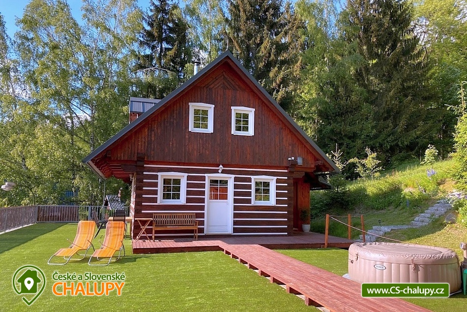 Wellness Roubenka Ella – Desná – Jizerské hory se nachází v obci Desná u Kořenova, na pomezí Jizerských hor a Krkonoš. Roubenka se saunou a vířivkou nabízí ubytování pro 8 osob ve třech ložnicích (2x třílůžková, 1x dvoulůžková). Možnost zapůjčení dětské postýlky. Všechny tři ložnice se nacházejí v patře společně s koupelnou se sprchovým koutem a WC. V přízemí je k dispozici obývací pokoj s pohovkou, krbovými kamny, TV, fotbálkem a plně vybavená kuchyň (lednice, mrazák, mikrovlnná trouba, sporák, trouba, rychlovarná konvice a myčka) s jídelním koutem. Najdete zde také druhou koupelnu se sprchovým koutem, WC a pračkou. K dispozici je Wi-Fi připojení a roubenka je vytápěna podlahovým topením a krbovými kamny na peletky. V objektu je garáž pro 4 auta a úschovna pro kola/lyže a jiné vybavení. Na rozsáhlém pozemku s vlastním lesem se nachází venkovní sauna, posezení s grilem, ohniště, dětské hřiště, pískoviště, pingpongový stůl a malý nafukovací bazén. V létě vířivka. Roubenka leží na rozmezí Jizerských hor a Krkonoš, což je ideální výchozí bod pro letní a zimní dovolenou. V létě se můžete vydat na spoustu pěších i cyklistických výletů: Naučná stezka Járy Cimrmana, rozhledna Štěpánka, vodopád Velký Štolpich, muzeum skla v Harrachově nebo na bobovou dráhu. Pro milovníky zimních sportů se tu nachází spousta ski areálů: Tanvaldský Špičák, Rokytnice nad Jizerou, Horní domky, Kořenov nebo U Čápa v Příchovicích. Vyrazit můžete i na běžky a vybrat si tak z mnoha upravených tratí. Těšíme se na Vás u nás.
