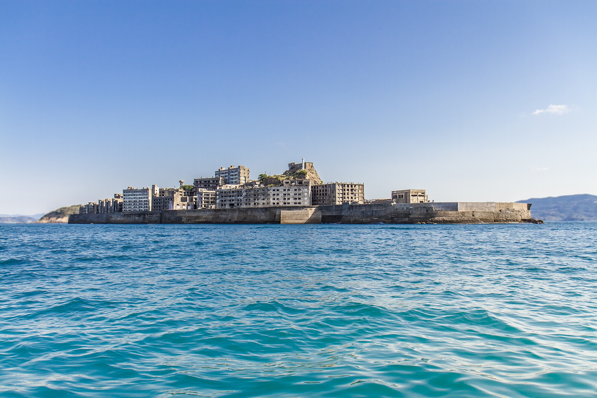 Je to jeden z 505 neobydlených japonských ostrovů a má tvar válečného plavidla. Od konce 19. století až do roku 1974 byl ostrov využíván k těžbě uhlí z moře a na ploše šesti hektarů se vyrojilo až pět tisíc jedinců. Po uzavření dolů své domovy vyklidili a betonová divočina zchátralých domů je dnes obrazem města duchů. Část ostrova měla být zpočátku dostupná pro senzachtivé pisálky, ale úředníci zde vybudovali 220 metrů dlouhou cestu, po které chodí turisté.