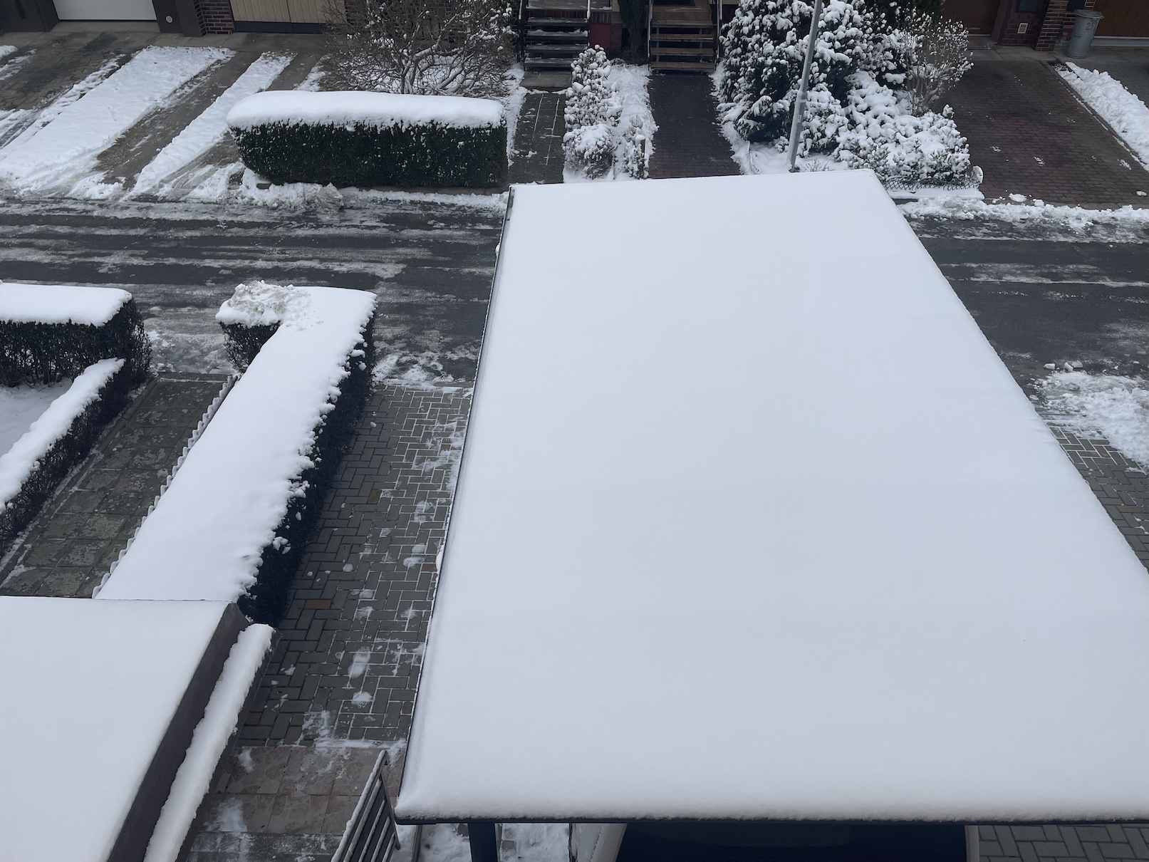 Ze soboty na neděli poměrně solidně nasněžilo. V sobotních odpoledních hodinách ještě chvíli pršelo, nicméně déšť se proměnil ve sníh a za noc napadlo minimálně 5 centimetrů prachového sněhu. Ten už ale včera začal přimrzat a teploty mířily hodně dolů. Na autě už byla přimrzlá vcelku solidní vrstva sněhu. Stejně tak sníh zůstával i na dalších místech.