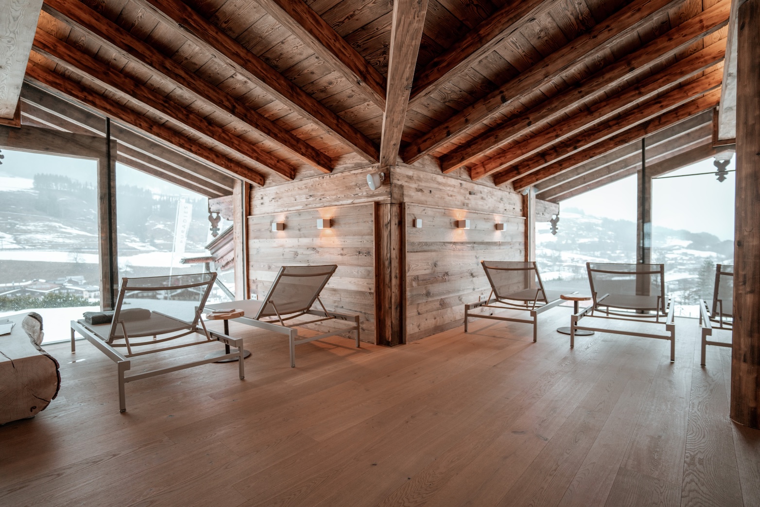 Zasloužený odpočinek čeká v lázních Heaven Spa resortu Puradies, který je skvělou základnou pro zimní radovánky v Leogangu. Rozkládají na ploše 1 500 m² a v ničem si nezadají s unikátní architekturou hotelu, jehož chloubou je dvoupodlažní bar Freiraum z 16 000 dubových kostek, oceněný IF Design Award. „Jste neustále součástí okolní přírody, ať už ve venkovním vyhřívaném bazénu, v prosklených panoramatických saunách, designových odpočívárnách, ve fitnku či prostoru na jógu s výhledem na okolní horské velikány – vše je propojeno s krajinou, takže máte pocit, že jste stále venku, i když relaxujete v teple,“ popisuje Michael Madreiter s tím, že na prostor lázní navazuje restaurace s terasou, velká čítárna, dětský koutek a každý pokoj je jedinečný.