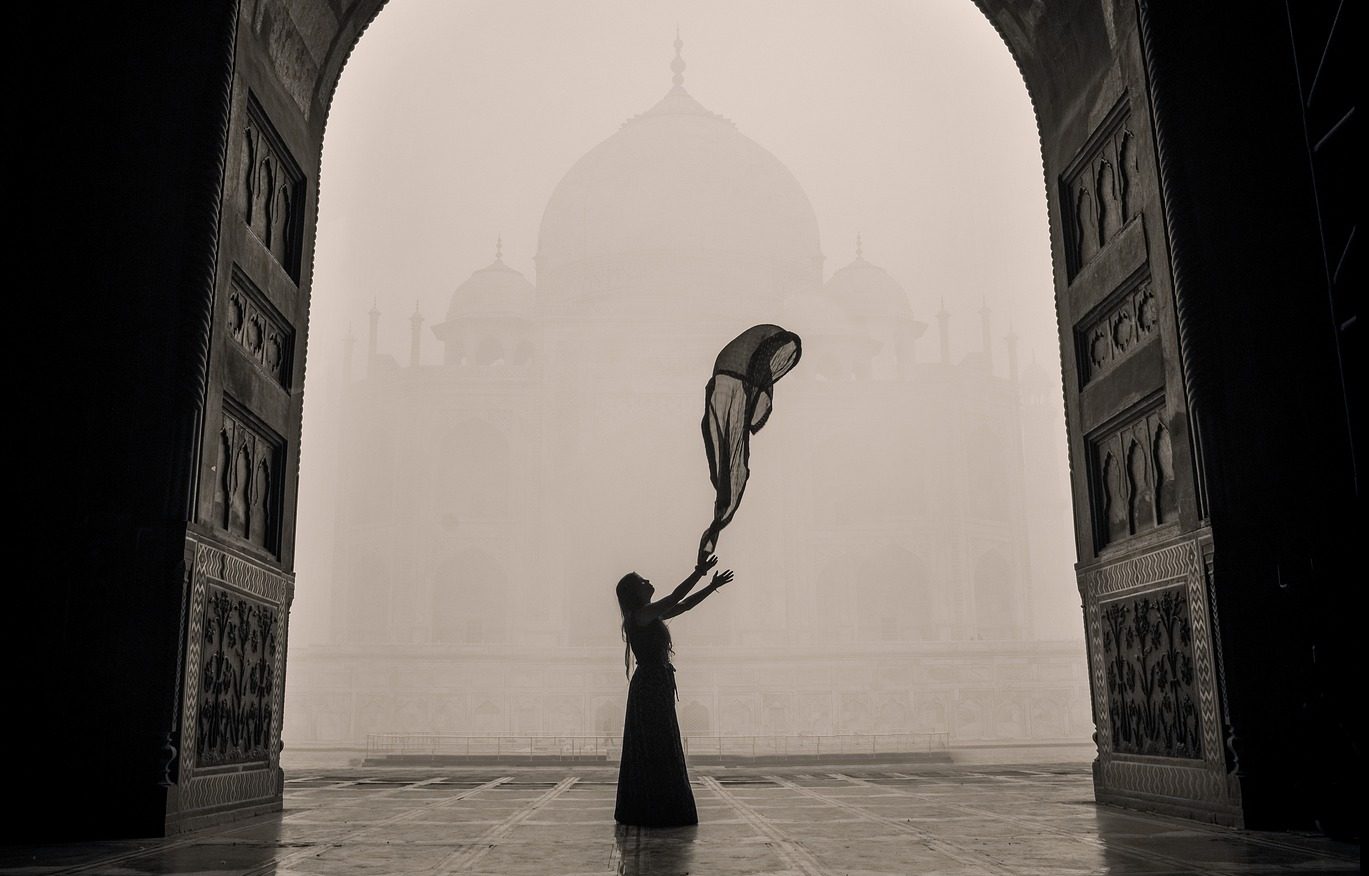 Taj Mahal, což v překladu znamená „Koruna paláce“, je jedním z nejvýznamnějších příkladů mughalské architektury. Jeho bílý mramor a jemné detaily zdobí krajinu jako něžná píseň lásky. Zlaté věžičky a kupole zdobené drahokamy a kameny představují symetrickou harmonii a dokonalost. Stavba je zasazena do rozlehlých zahrad, které dodávají Taj Mahalu klidnou a vznešenou atmosféru.